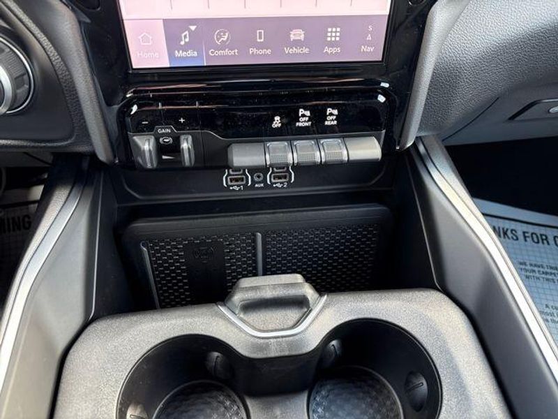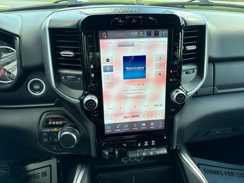 New Arrival! Bright White Clearcoat 115V Auxiliary Power Outlet, 115V Auxiliary Rear Power Outlet, 12'' Touchscreen Display, 2nd Row In Floor Storage Bins, 3 Rear Seat Head Restraints, 4 Way Front Headrests, 400W Inverter, 4G LTE Wi-Fi Hot Spot, 9 Amplified Speakers w/Subwoofer, Accent Color Door Handles, Accent Color Premium Power Mirrors, Accent Color Tailgate Handle, Air Conditioning ATC w/Dual Zone Control, Anti-Spin Differential Rear Axle, Apple CarPlay, Auto Power-Folding Mirrors, Auto-Dimming Exterior Driver Mirror, Auto-Dimming Rear-View Mirror, Big Horn Level 2 Equipment Group, Black Exterior Mirrors, Black Exterior Truck Badging, Black Headlamp Bezels, Black Interior Accents, Black Painted Exterior Mirrors Caps, Black Premium Power Mirrors, Black Tail Lamp Bezels, Body Color Fender Flares, Body Color Front Bumper, Body Color Rear Bumper w/Step Pads, Bucket Seats, Center Console Parts Module, Cluster 7.0'' TFT Color Display, Configurable Drive Mode, Connected Travel & Traffic Services, Connectivity - US/Canada, Convex Wide-Angle Exterior Mirror Insert, Deluxe Cloth Bucket Seats, Disassociated Touchscreen Display, Dual Exhaust w/Black Tips, Exterior Mirrors Courtesy Lamps, Exterior Mirrors w/Heating Element, Exterior Mirrors w/Supplemental Signals, Front Seat Back Map Pockets, Full Length Floor Console, Global Telematics Box Module (TBM), Glove Box Lamp, Google Android Auto, GPS Antenna Input, GPS Navigation, Grille Black Surround Black Mesh, HD Radio, Heated Front Seats, Heated Steering Wheel, Integrated Center Stack Radio, Integrated Voice Command w/Bluetooth, Leather Wrapped Steering Wheel, LED Dome Lamp w/On/Off Switch, LED Footwell Lighting, Manual Adjust 4-Way Front Passenger Seat, Media Hub w/2 Charge Only USBs, Night Edition, Overhead LED Lamps, Power 2-Way Driver Lumbar Adjust, Power Adjust 8-Way Driver Seat, Power Adjustable Pedals, Premium Overhead Console, Radio: Uconnect 5 Nav w/12.0'' Display, RAM Grille Badge - Black, Rear 60/40 Folding Seat, Rear Center Armrest, Rear Power Sliding Window, Rear Window Defroster, Remote Tailgate Release, Secondary Active Grille Shutters, Security Alarm, SiriusXM Radio Service, SiriusXM w/360L, Steering Wheel Mounted Audio Controls, Sun Visors w/Illuminated Vanity Mirrors, Universal Garage Door Opener, USB Host Flip, Wheels: 20'' x 9.0'' Aluminum Painted Clad, Wheels: 20'' x 9'' Aluminum Chrome Clad (WRK), Wireless Charging Pad.