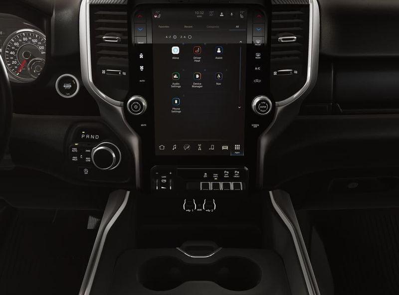 Coming Soon! Granite Crystal Metallic Clearcoat 115V Auxiliary Power Outlet, 115V Auxiliary Rear Power Outlet, 12'' Touchscreen Display, 2nd Row in Floor Storage Bins, 3 Rear Seat Head Restraints, 4 Way Front Headrests, 400W Inverter, 4G LTE Wi-Fi Hot Spot, 9 Amplified Speakers with Subwoofer, Accent Color Door Handles, Accent Color Premium Power Mirrors, Accent Color Tailgate Handle, Air Conditioning ATC with Dual Zone Control, Anti-Spin Differential Rear Axle, Apple CarPlay, Auto Power-Folding Mirrors, Auto-Dimming Exterior Driver Mirror, Auto-Dimming Rear-View Mirror, Bed Utility Group, Big Horn Level 2 Equipment Group, Black Exterior Mirrors, Black Exterior Truck Badging, Black Headlamp Bezels, Black Interior Accents, Black Painted Exterior Mirrors Caps, Black Premium Power Mirrors, Black Tail Lamp Bezels, Body Color Fender Flares, Body Color Front Bumper, Body Color Rear Bumper with Step Pads, Bucket Seats, Center Console Parts Module, Cluster 7.0'' TFT Color Display, Configurable Drive Mode, Connected Travel and Traffic Services, Connectivity - US/Canada, Convex Wide-Angle Exterior Mirror Insert, Deluxe Cloth Bucket Seats, Disassociated Touchscreen Display, Dual Exhaust with Black Tips, Exterior 115V AC Outlet, Exterior Mirrors Courtesy Lamps, Exterior Mirrors with Heating Element, Exterior Mirrors with Supplemental Signals, Front Seat Back Map Pockets, Full Length Floor Console, Global Telematics Box Module, Glove Box Lamp, Google Android Auto, GPS Antenna Input, GPS Navigation, Grille Black Surround Black Mesh, HD Radio, Heated Front Seats, Heated Steering Wheel, Integrated Center Stack Radio, Integrated Voice Command with Bluetooth, Leather Wrapped Steering Wheel, LED Dome Lamp with on/Off Switch, LED Footwell Lighting, Manual Adjust 4-Way Front Passenger Seat, Media Hub with 2 Charge Only USBs, MOPAR 4 Adjustable Cargo Tie-Down Hooks, MOPAR Spray in Bedliner, Night Edition, Overhead LED Lamps, Pick-Up Box Lighting, Power 2-Way Driver Lumbar Adjust, Power Adjust 8-Way Driver Seat, Power Adjustable Pedals, Premium Overhead Console, Radio: Uconnect 5 Navigation with 12.0'' Display, RAM Grille Badge - Black, Rear 60/40 Folding Seat, Rear Center Armrest, Rear Power Sliding Window, Rear Window Defroster, Remote Tailgate Release, Security Alarm, SiriusXM Radio Service, SiriusXM with 360L, Steering Wheel Mounted Audio Controls, Sun Visors with Illuminated Vanity Mirrors, Universal Garage Door Opener, USB Host Flip, Wheels: 20'' x 9.0'' Aluminum Painted Clad, Wheels: 20'' x 9'' Aluminum Chrome Clad.