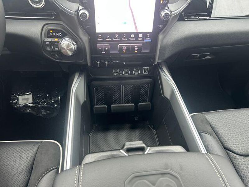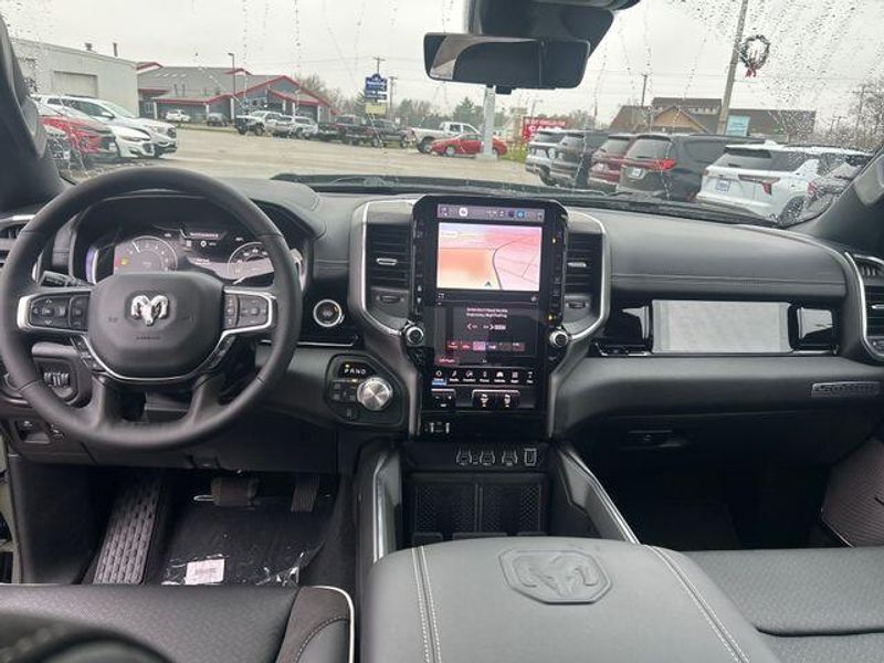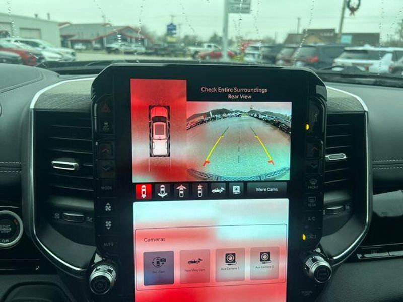 New Arrival! Canyon Lake 12-Way/1-Way Trailer Connector, 14.4'' Touchscreen Display, 4G LTE Wi-Fi Hot Spot, Accent Color Door Handles, Accent Color Premium Power Mirrors, Accent Color Tailgate Handle, Active Driving Assist System, Advanced Safety Group II, Anti-Spin Differential Rear Axle, Auto Power-Folding Mirrors, Auto-Dimming Exterior Driver Mirror, Black Exterior Truck Badging, Black Headlamp Bezels, Black Interior Accents, Black Painted Exterior Mirrors Caps, Black Tail Lamp Bezels, Body Color Front Bumper, Body Color Rear Bumper w/Step Pads, Cluster 12'' TFT Color Display, Connected Travel & Traffic Services, Connectivity - US/Canada, Convex Wide-Angle Exterior Mirror Insert, Drowsy Driver Detection, Dual Exhaust w/Black Tips, Evasive Steer Assist, Exterior Mirrors Approach Lamps, Exterior Mirrors Courtesy Lamps, Exterior Mirrors w/Heating Element, Exterior Mirrors w/Memory, Exterior Mirrors w/Supplemental Signals, Front Passenger Interactive Display, GPS Navigation, Grille Surround 3 Black Texture 2 Black, harman/kardon 19 Speaker Premium Sound, Heads-Up Display, Integrated Center Stack Radio, Integrated Voice Command w/Bluetooth, Intersection Collision Assist System, Laramie Level 2 Equipment Group, LED CHMSL Lamp, Night Edition, Pirelli Brand Tires, Power Tailgate, Proximity Approach/Departure Lamps, Radio: Uconnect 5 Nav w/14.4'' Display, Rain Sensitive Windshield Wipers, RAM Grille Badge - Black, SiriusXM Radio Service, SiriusXM w/360L, Sport Performance Hood, Surround View Camera System, Technology Group, Traffic Sign Recognition, USB Host Flip, Wheels: 22'' x 9'' Forged Aluminum.