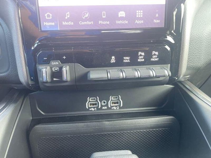 New Arrival! Granite Crystal Metallic Clearcoat 12'' Touchscreen Display, 2 Way Rear Headrest Seat, 2nd Row In Floor Storage Bins, 4 Way Front Headrests, 40/20/40 Split Bench Seat, 4G LTE Wi-Fi Hot Spot, 9 Alpine Speakers w/Subwoofer, Air Conditioning ATC w/Dual Zone Control, Alexa Built-In, Anti-Spin Differential Rear Axle, Apple CarPlay, Auto Power-Folding Mirrors, Auto-Dimming Rear-View Mirror, Big Horn Level 1 Plus Equipment Group, Black Exterior Mirrors, Connected Travel & Traffic Services, Connectivity - US/Canada, Disassociated Touchscreen Display, Dual Glove Boxes, Emergency Vehicle Alert System (EVAS), Exterior Mirrors Courtesy Lamps, Exterior Mirrors w/Heating Element, Exterior Mirrors w/Supplemental Signals, Foam Bottle Insert (Door Trim Panel), Folding Flat Load Floor Storage, Footwell Courtesy Lamp, For Details, Visit DriveUconnect.com, For More Info, Call 800-643-2112, Forward & Reverse Utility Lights, Front Armrest w/Cupholders, Front Center Seat Cushion Storage, Front Seat Back Map Pockets, Global Telematics Box Module (TBM), Glove Box Lamp, Google Android Auto, GPS Antenna Input, GPS Navigation, HD Radio, Heated Front Seats, Heated Seats & Wheel Group, Heated Steering Wheel, Integrated Voice Command w/Bluetooth, LED Bed Lighting, Locking Lower Glove Box, Luxury Steering Wheel, Manual Adjust 4-Way Front Passenger Seat, Mirror Running Lights, MOPAR Deployable Bed Step, MOPAR Spray In Bedliner, Off-Road Info Pages, Power 2-Way Driver Lumbar Adjust, Power Adjust 8-Way Driver Seat, Power Adjust Mirrors, Power Heated Folding Telescopic Mirrors, Power Telescoping Mirrors, Power-Adjustable Convex Aux Mirrors, Premium Cloth 40/20/40 Bench Seat, Radio: Uconnect 5 Nav w/12.0'' Display, Rear 60/40 Folding Seat, Rear Dome w/On/Off Switch Lamp, Remote Start System, Remote USB Port - Charge Only, Selectable Tire Fill Alert, SiriusXM Radio Service, SiriusXM w/360L, Steering Wheel Mounted Audio Controls, Storage Tray, Trailer Tow Pages.