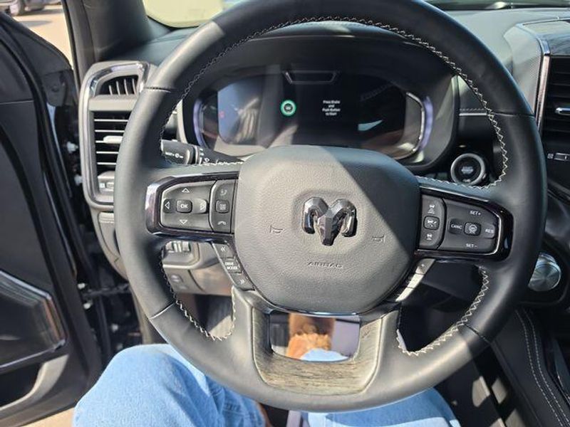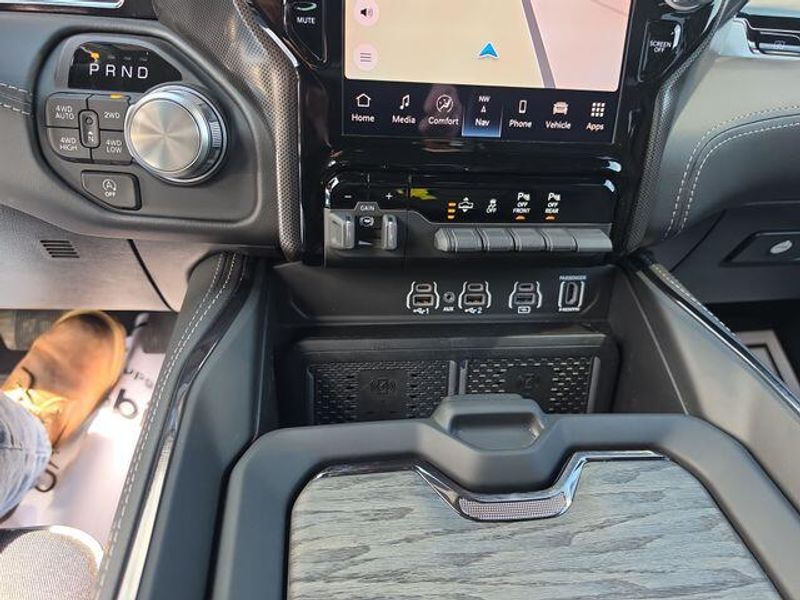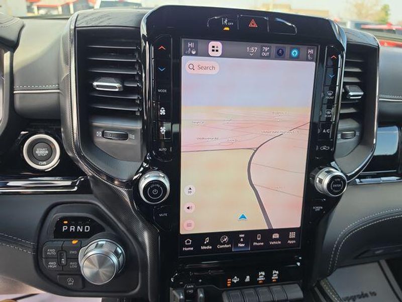 Inside, this truck is loaded with upscale features including massaging front seats, heated and ventilated front and rear seats, a heated steering wheel, and a massive 12-inch Uconnect 5 touchscreen with navigation. Youll also enjoy a 12-inch digital driver display, passenger interactive screen, dual wireless charging, and a 19-speaker Harman Kardon premium sound system.